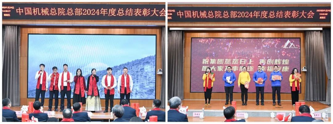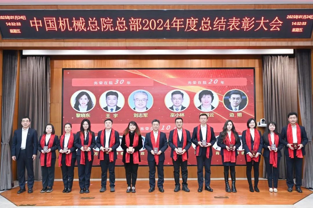 大會現(xiàn)場氣氛喜慶熱烈?!对鲂刨x能 攜手同行》短片,回顧2024年豐碩成果、展望2025年發(fā)展前景。各部門以視頻方式送來新春祝福。大會向光榮在院30年、20年、10年的干部職工頒發(fā)紀念章;對涌現(xiàn)出的先進集體和優(yōu)秀個人進行了表彰。集團領導為獲獎代表頒獎,獲獎代表感言分享成長喜悅、表達美好祝福。