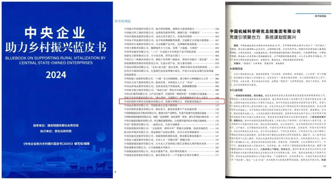 國務(wù)院國資委發(fā)布了《中央企業(yè)助力鄉(xiāng)村振興藍(lán)皮書(2024)》,集團(tuán)申報的《黨建引領(lǐng)聚合力 系統(tǒng)謀劃促振興》案例成功入選了2024年中央企業(yè)助力鄉(xiāng)村振興典型案例。